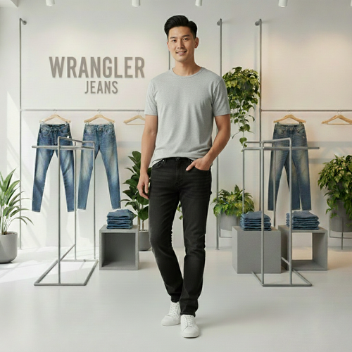 شلوار جین راسته مردانه نخ پنبه رانگلر رنگ ذغالی نخ دوخت همرنگ مدل JRP-ZTH