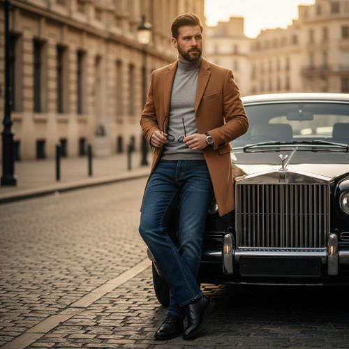 شلوار جین راسته مردانه نخ پنبه رانگلر رنگ نسکافه ای نخ دوخت همرنگ مدل P-JRP-NH
