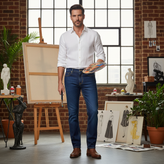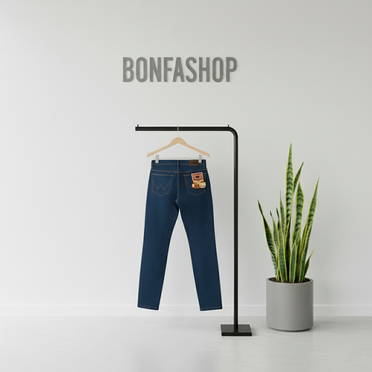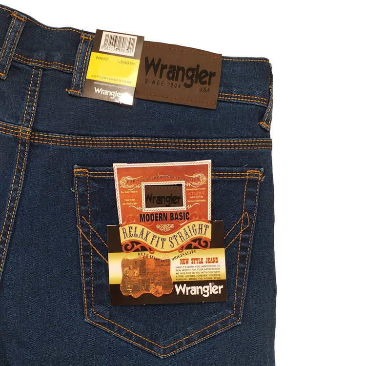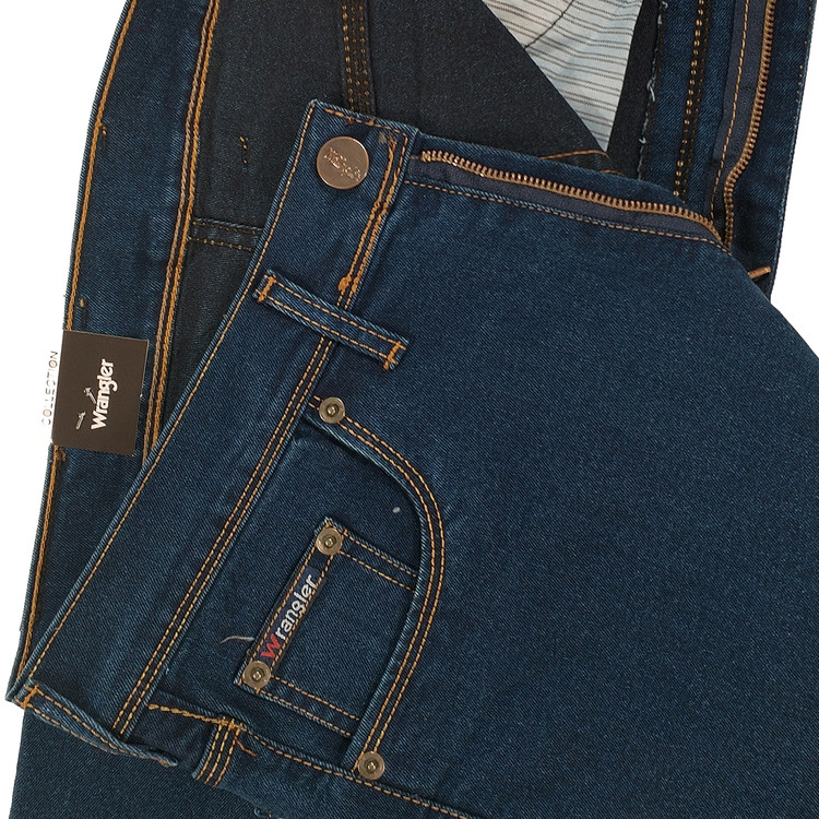 شلوار جین راسته مردانه رانگلر رنگ آبی کاربنی نخ دوخت طلایی مدل JR-ACT