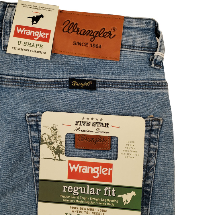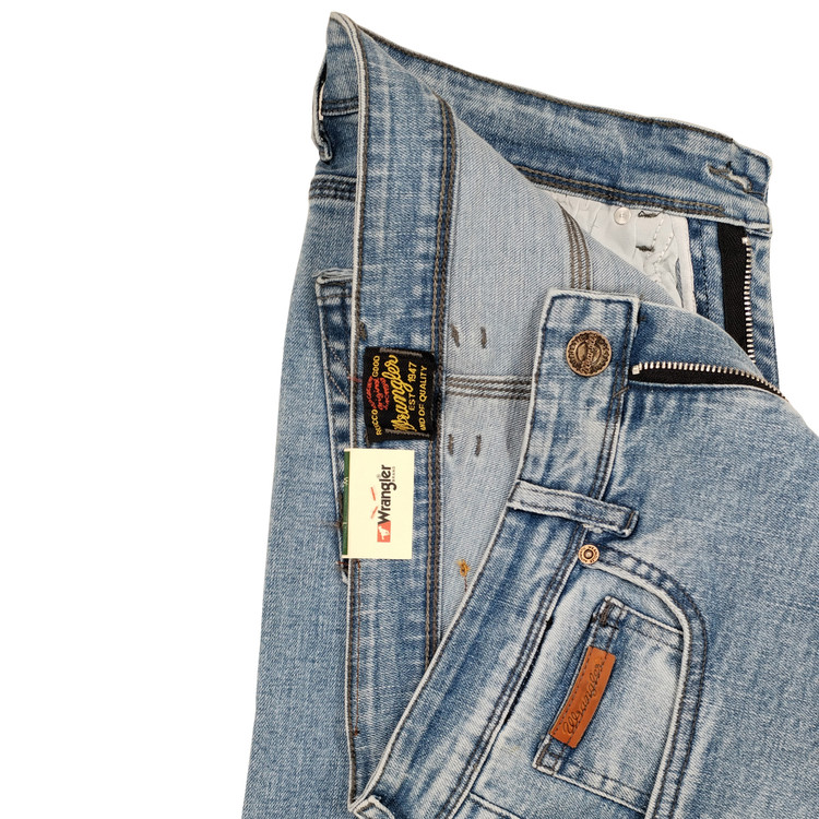 شلوار جین راسته مردانه نخ پنبه رانگلر رنگ آبی روشن نخ دوخت همرنگ مدل JRP-ARH