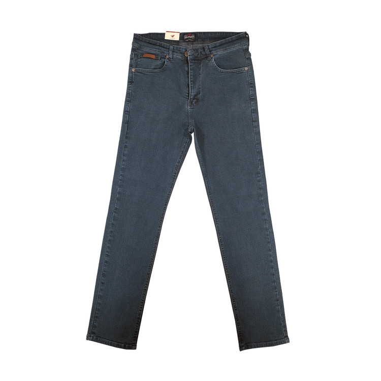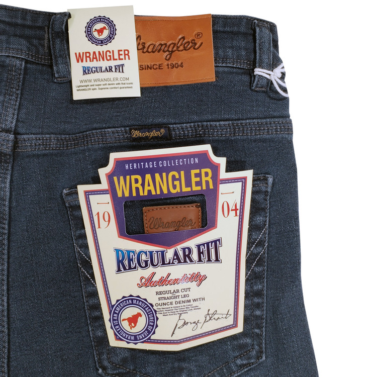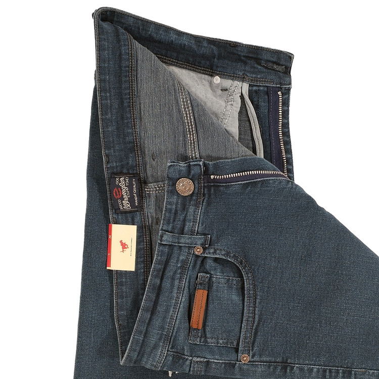 شلوار جین راسته مردانه نخ پنبه رانگلر رنگ فیلی تیره نخ دوخت همرنگ مدل JRP-FTH