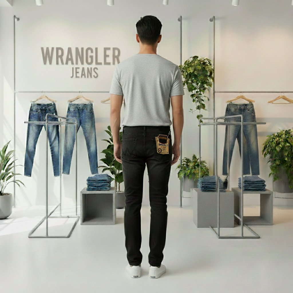 شلوار جین راسته مردانه نخ پنبه رانگلر رنگ ذغالی نخ دوخت همرنگ مدل JRP-ZTH