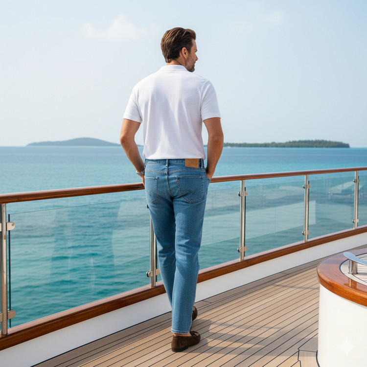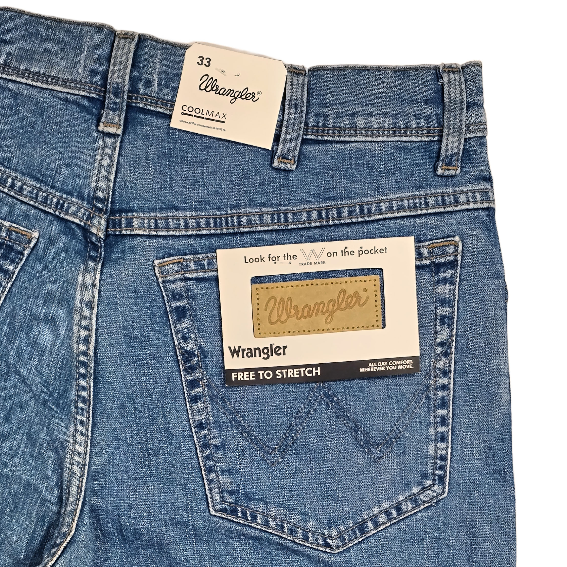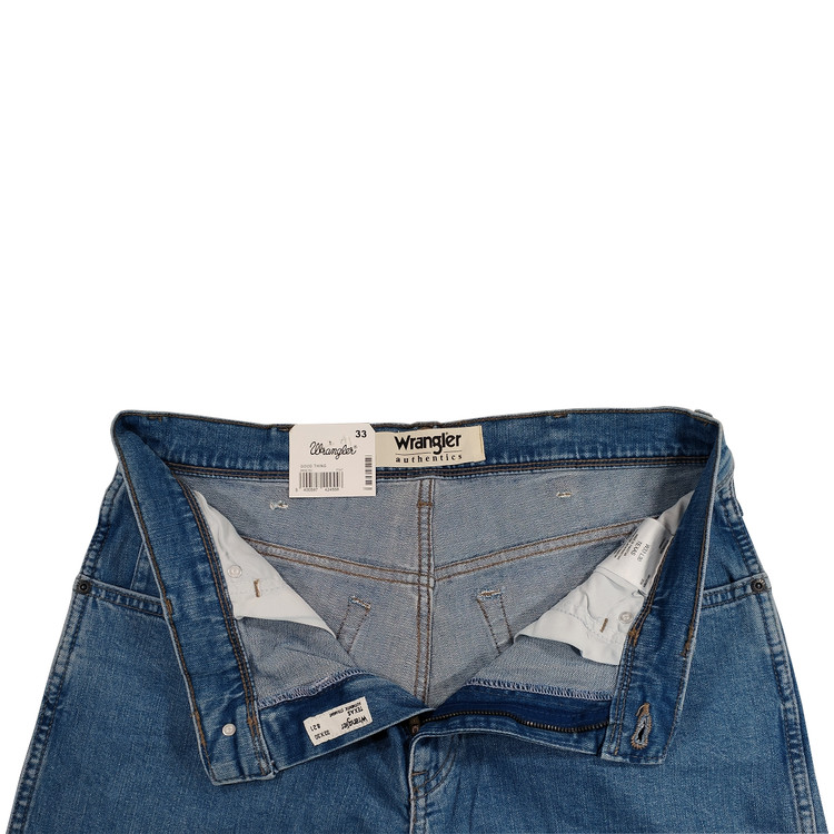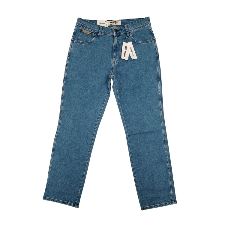 شلوار جین راسته مردانه نخ پنبه رانگلر آبی روشن نخ دوخت طلایی مدل P-JRP-ART