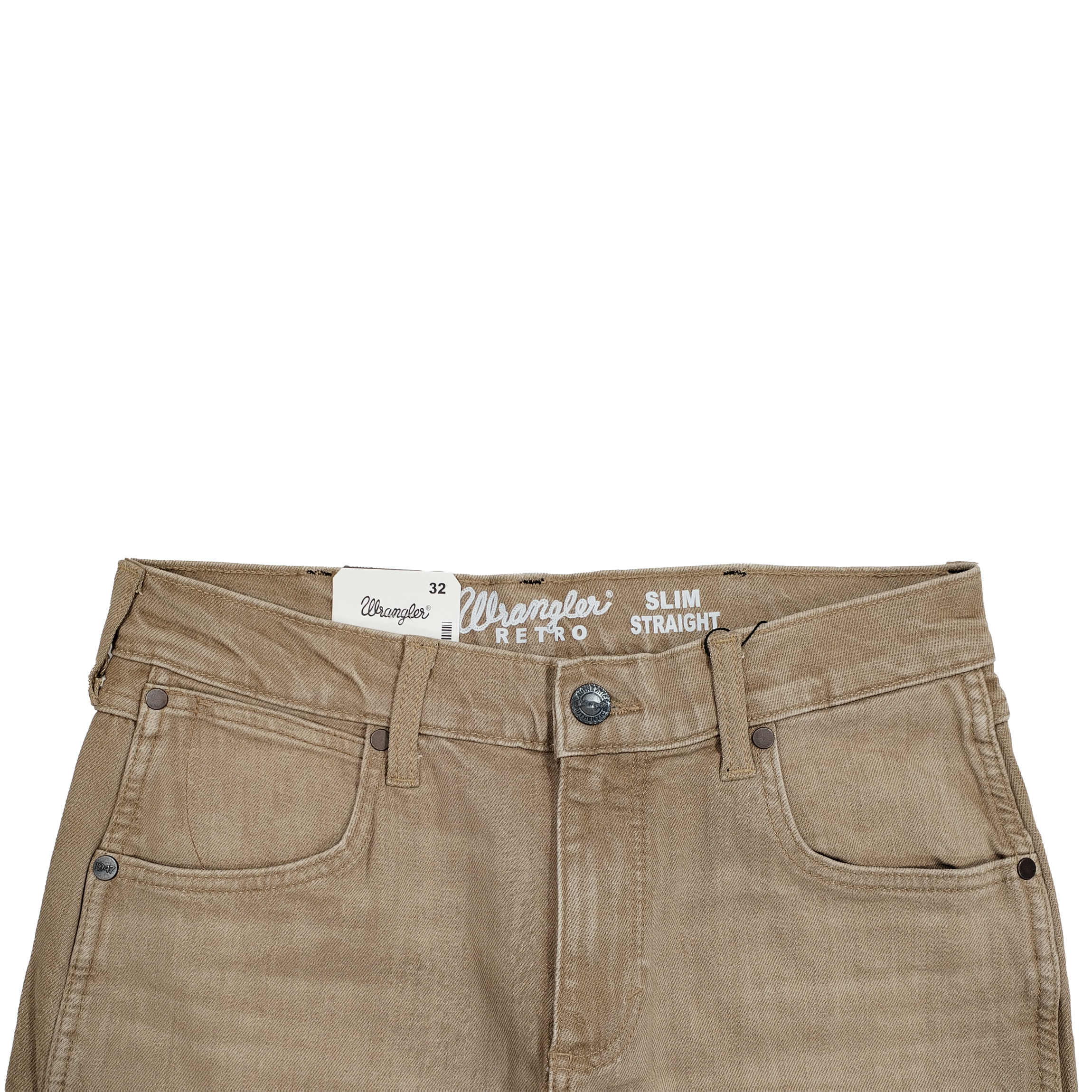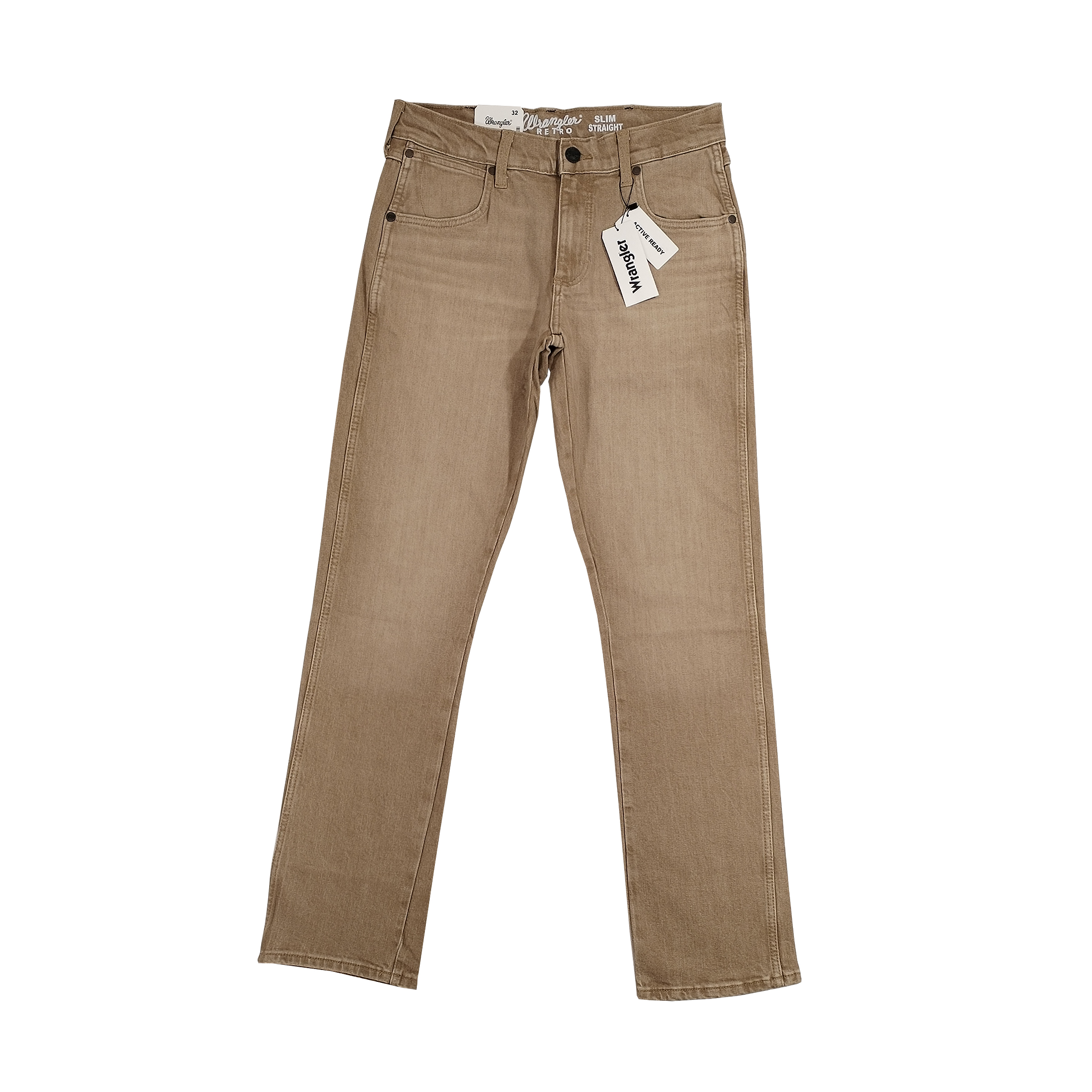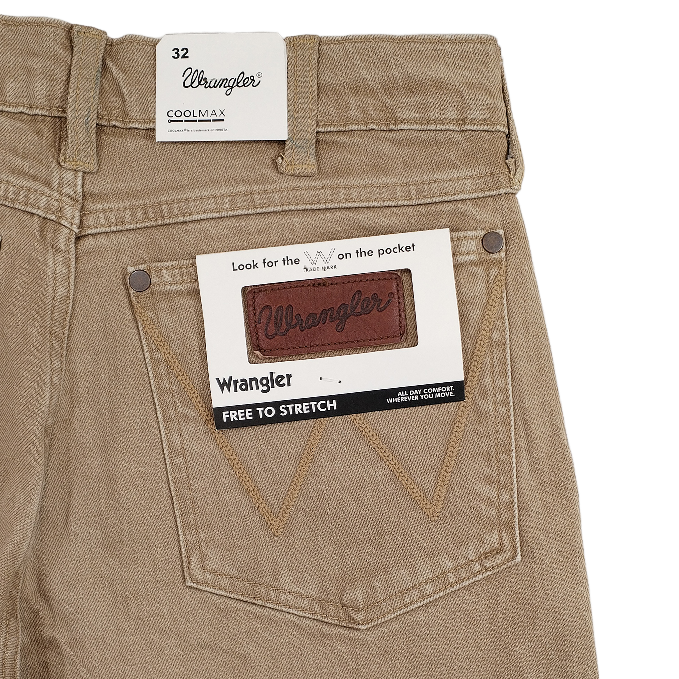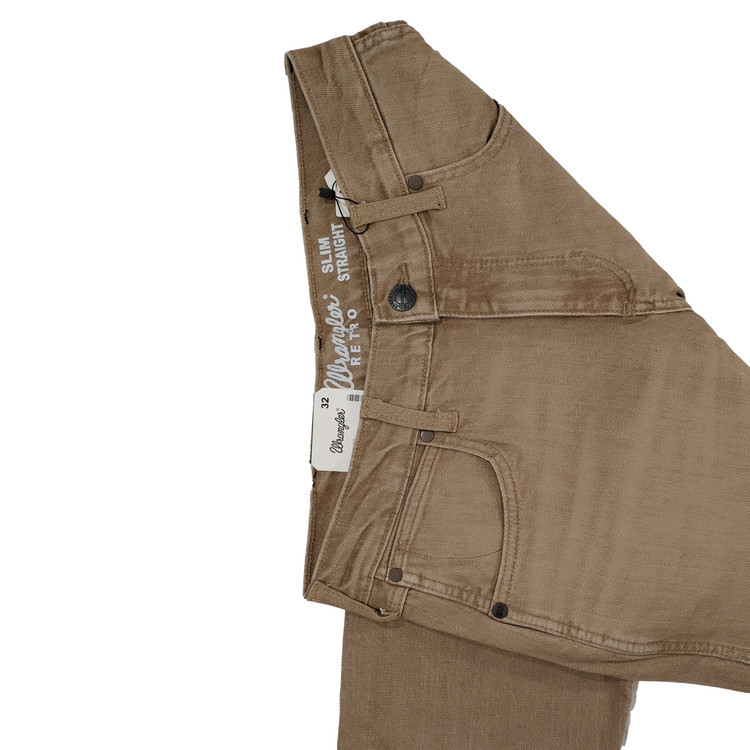 شلوار جین راسته مردانه نخ پنبه رانگلر رنگ نسکافه ای نخ دوخت همرنگ مدل P-JRP-NH