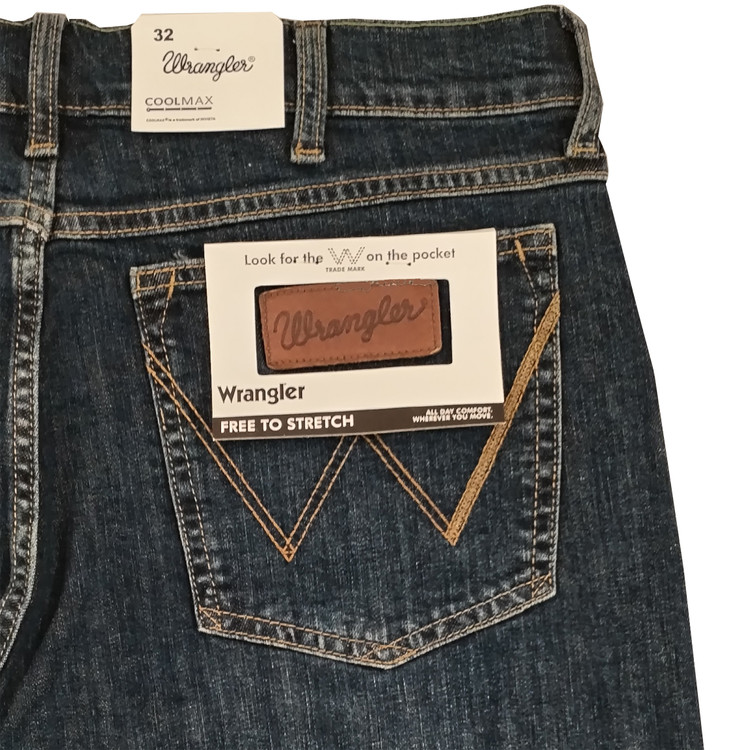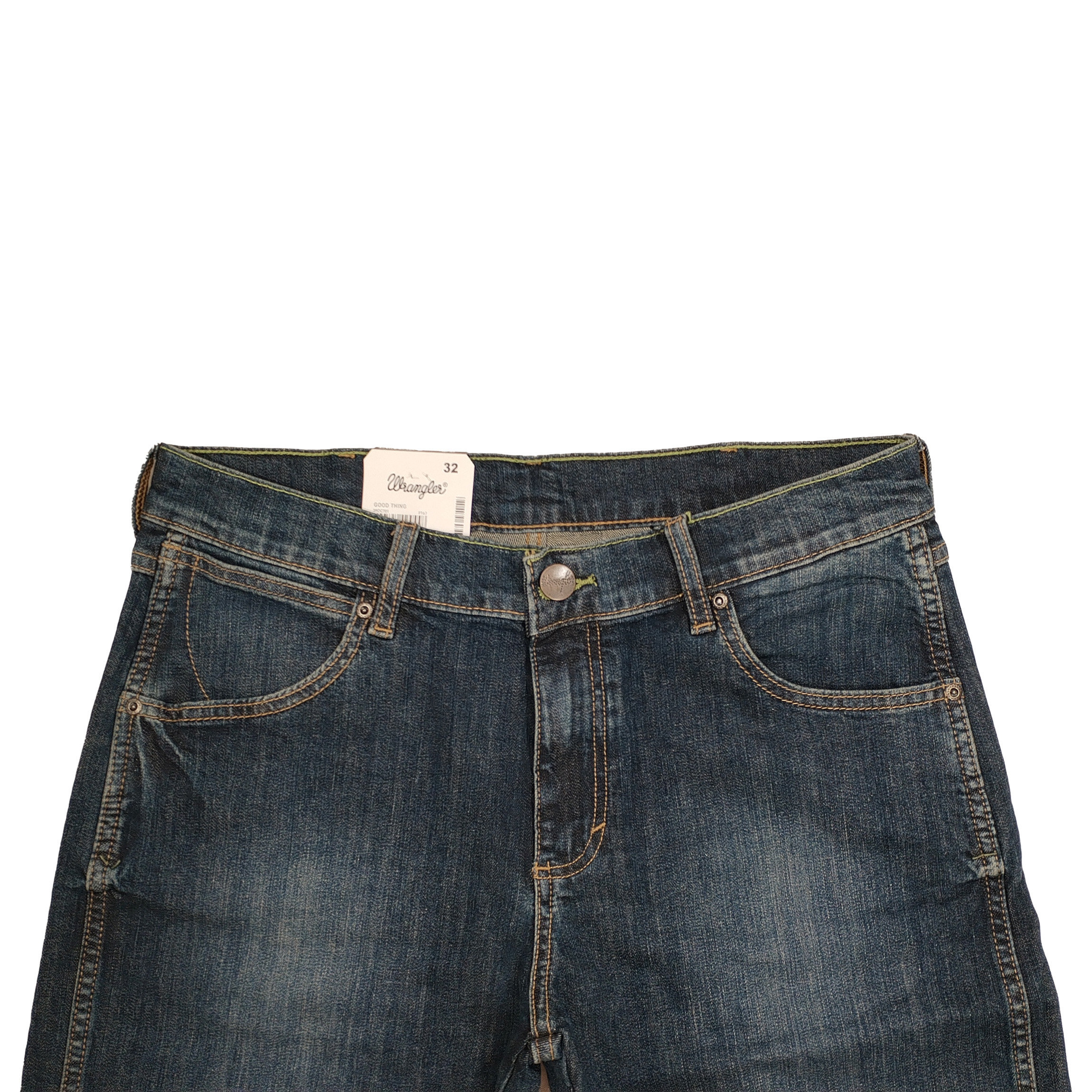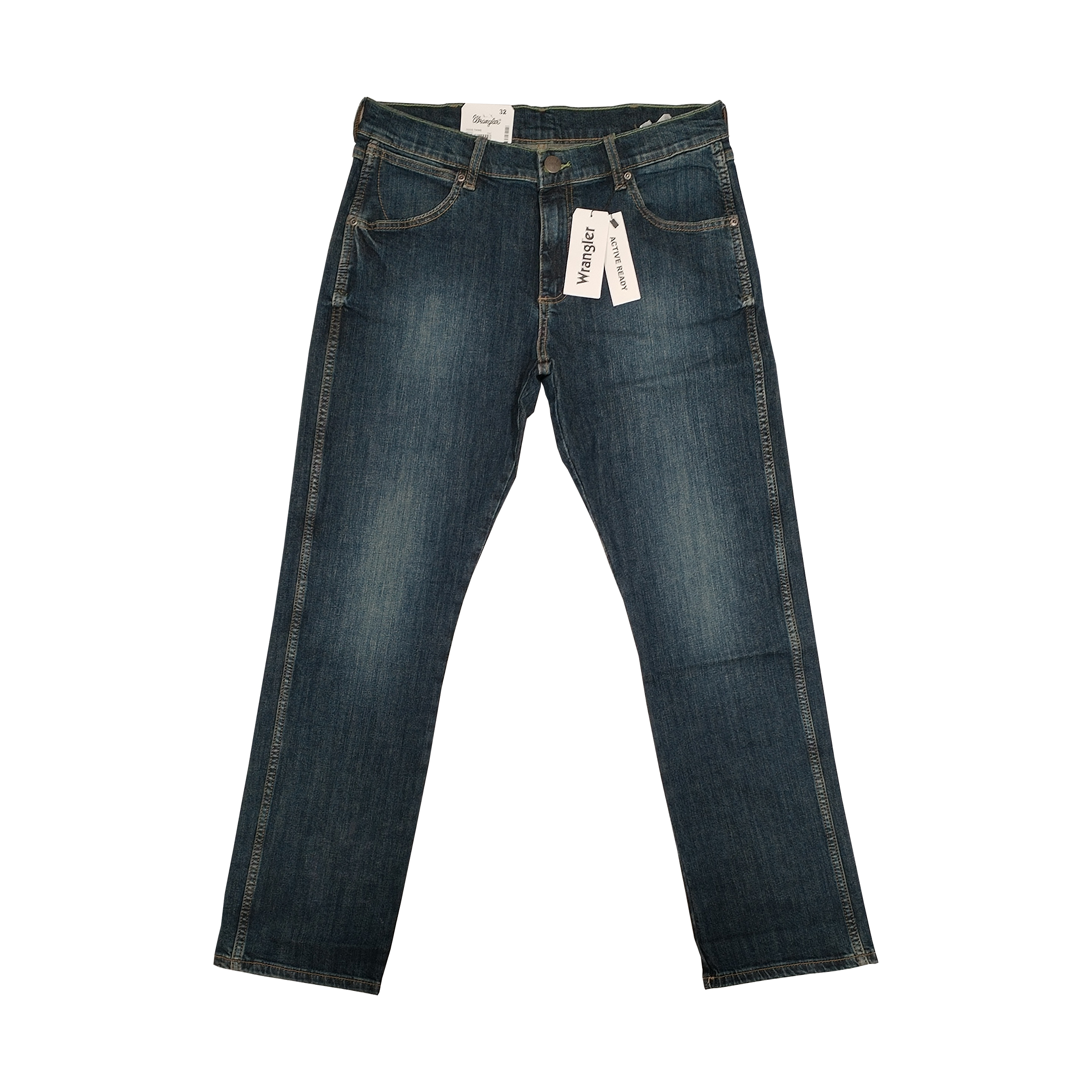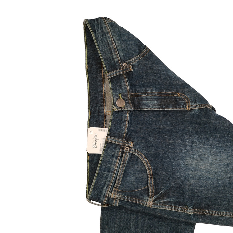 شلوار جین راسته مردانه نخ پنبه رانگلر رنگ اقیانوسی نخ دوخت طلایی مدل P-JRP-OT