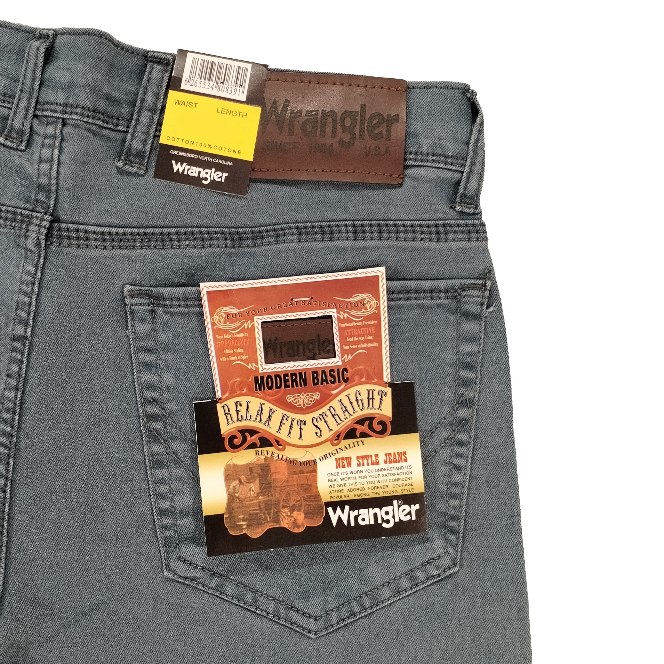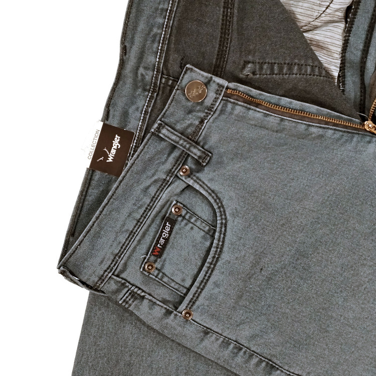 شلوار جین راسته مردانه رانگلر رنگ فیلی با نخ دوخت همرنگ مدل JR-FRH