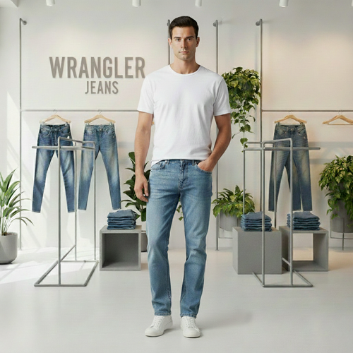 شلوار جین راسته مردانه نخ پنبه رانگلر رنگ نسکافه ای نخ دوخت همرنگ مدل P-JRP-NH